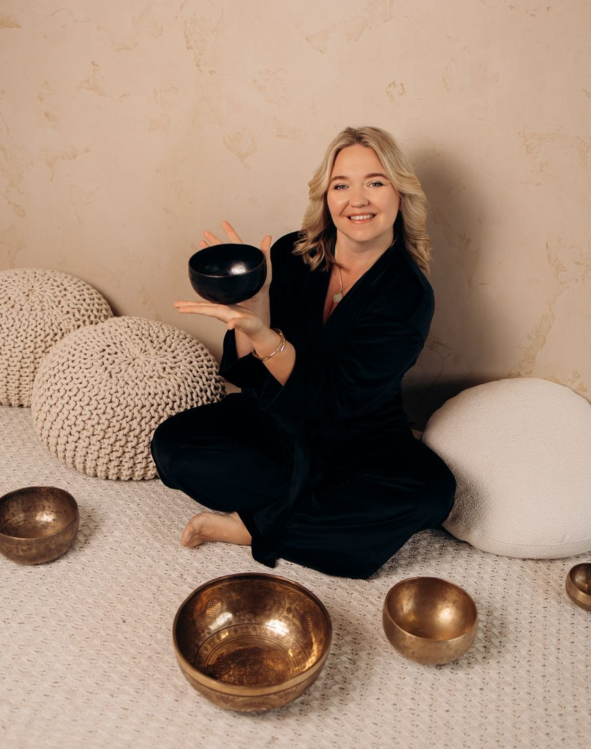 більш тілесна практика. Чаші розміщують на тілі і через вібрації Ви буквально відчуваєте, як знімається м'язова напруга, покращується кровообіг, а нервова система заспокоюється. Тіло ніби відповідає на звук, входячи в природний ритм відновлення, де зʼявляється відчуття цілісності, балансу й внутрішньої опори.