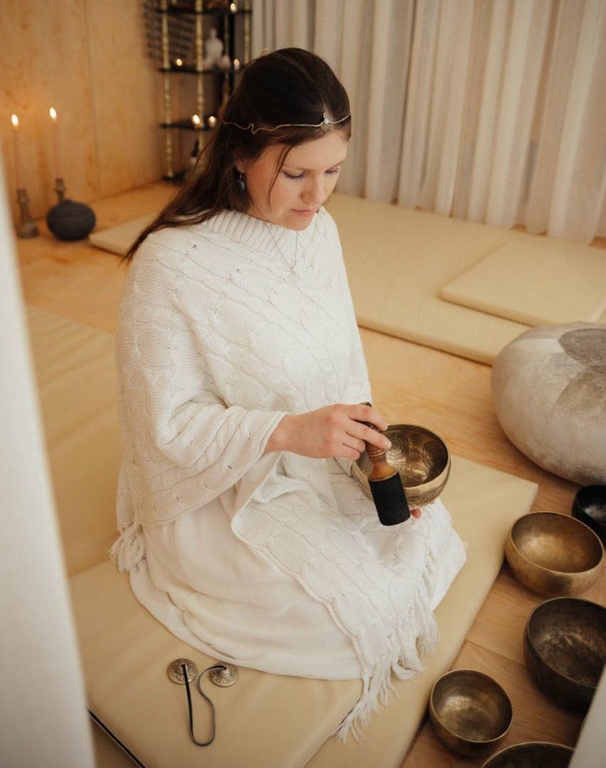 це мʼяке занурення в простір звуку, де вібрації чаш заповнюють приміщення, поступово заспокоюють розум, вирівнюють дихання і допомагають відпустити внутрішню напругу. Вібрації чаш допомагають мозку перейти з активних хвиль напруження у стан, близький до медитативного. Нервова система починає відновлюватися, тіло – саморегулюватися.