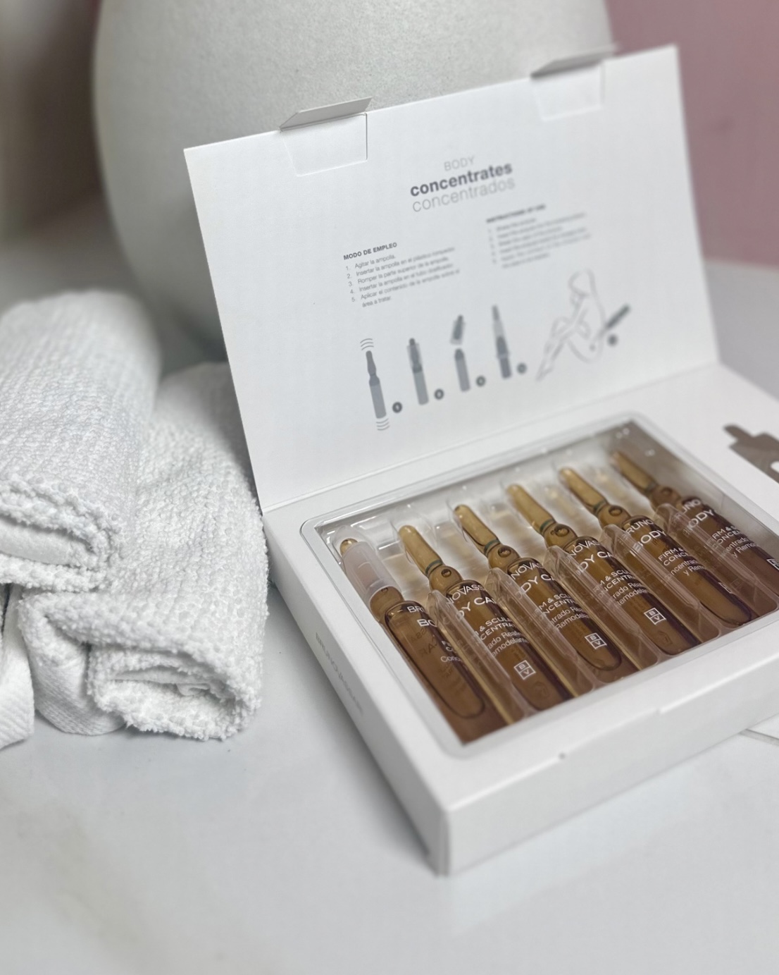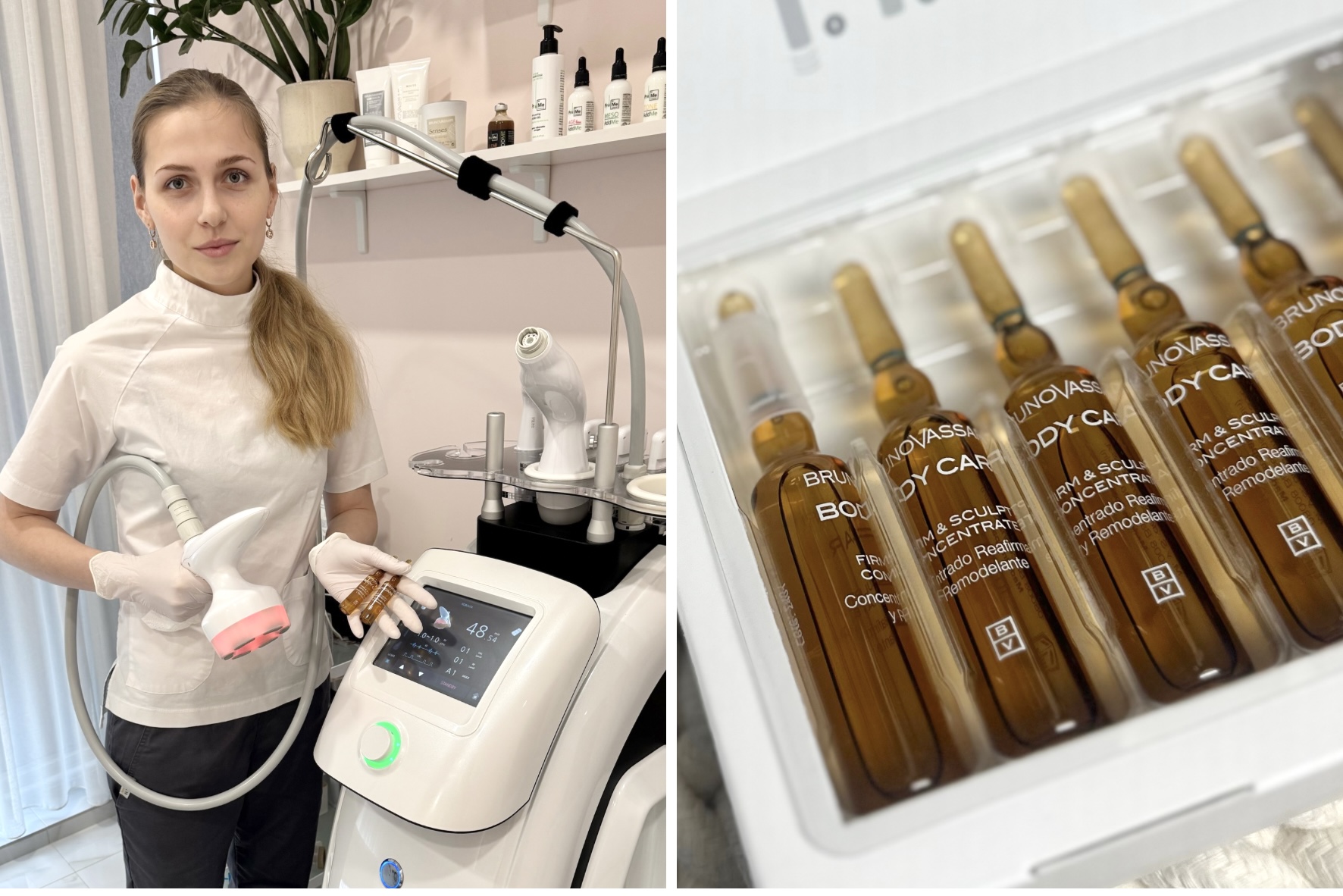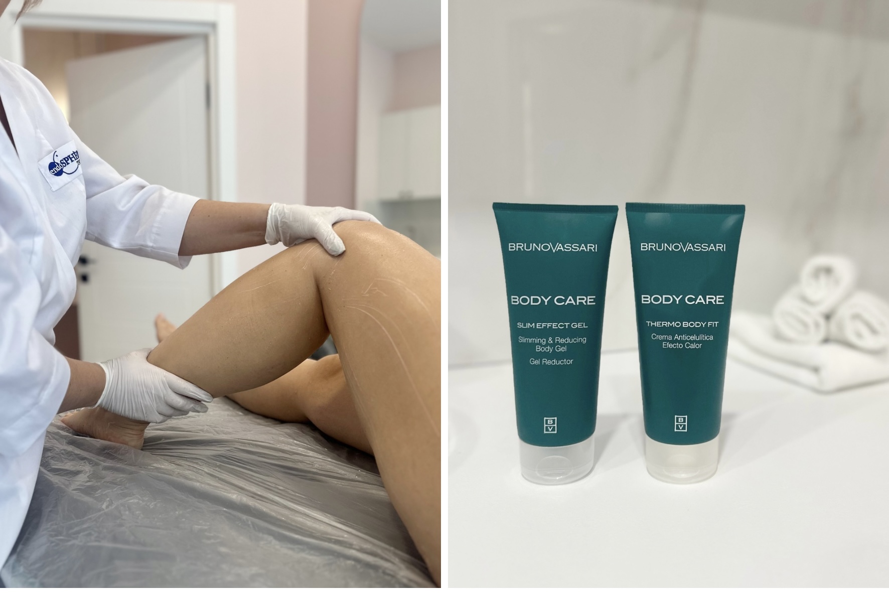 Для корекції фігури ми використовуємо професійну іспанську косметику, яка має власні лабораторії, де розробляються формули і компоненти, із сильним акцентом на інновації і ефективність. Бренд дбає про якість — використовує добірні, екологічно чисті інгредієнти, контроль якості, сертифікацію. Продукти часто дають помітний результат уже після першої процедури, що важливо у професійному догляді.